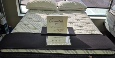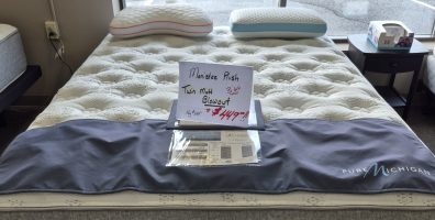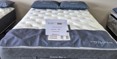 We are bringing in a new model called the Copper Harbor Cushion Firm and are going to display this mattress, the Sutton’s Bay Plush, in a different size.