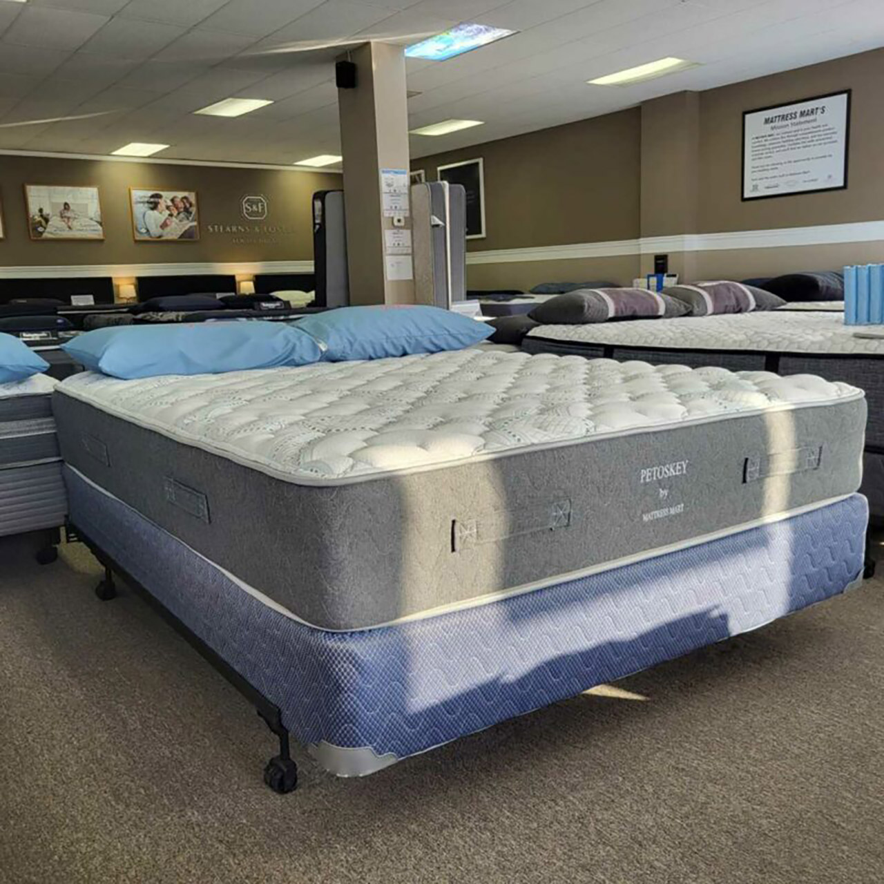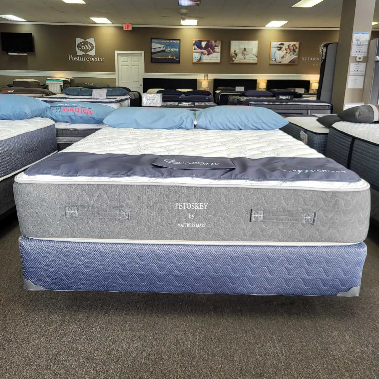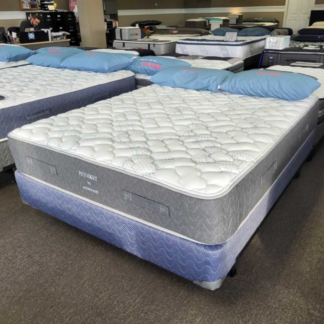 One of the hardest-feeling mattresses in the store, if you’re looking for the only beds stronger, check out Therapedic’s entire TheraLuxe HD line-up. The Petoskey Extra Firm is a harder bed than the HD’s, but internally the HD‘s use a stronger spring and evn higher density upholstery for even greater durability.