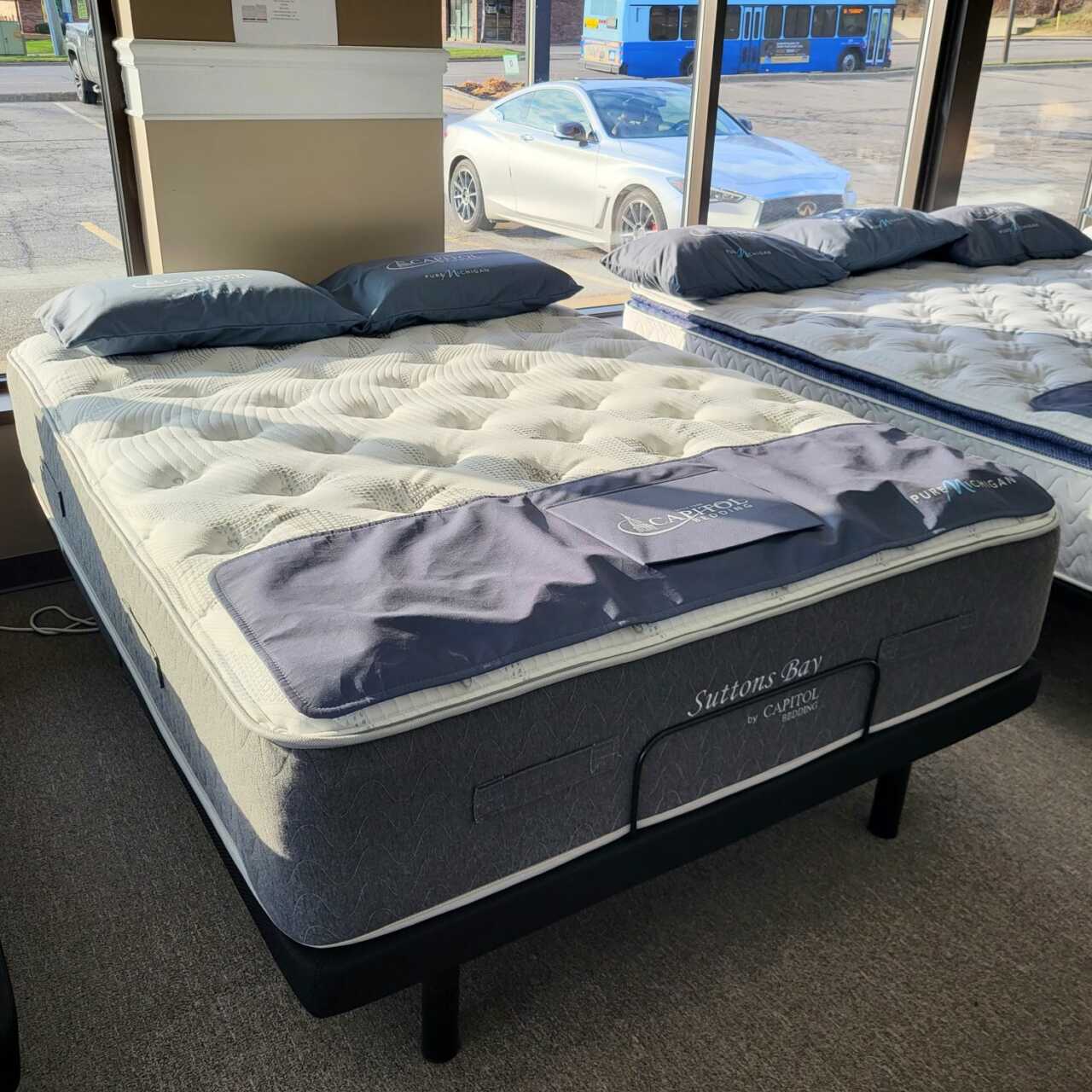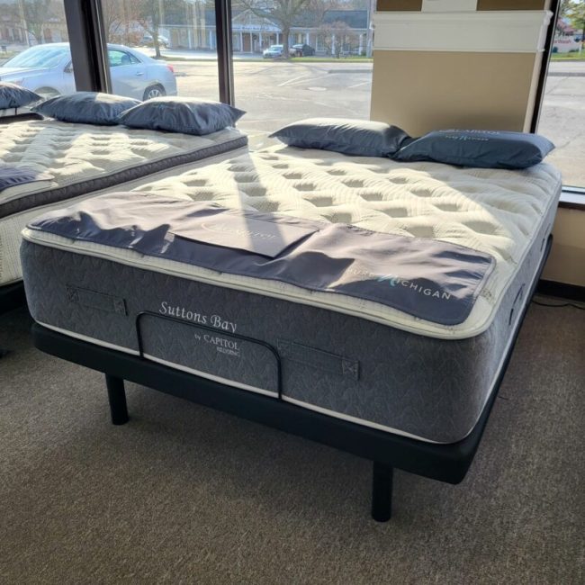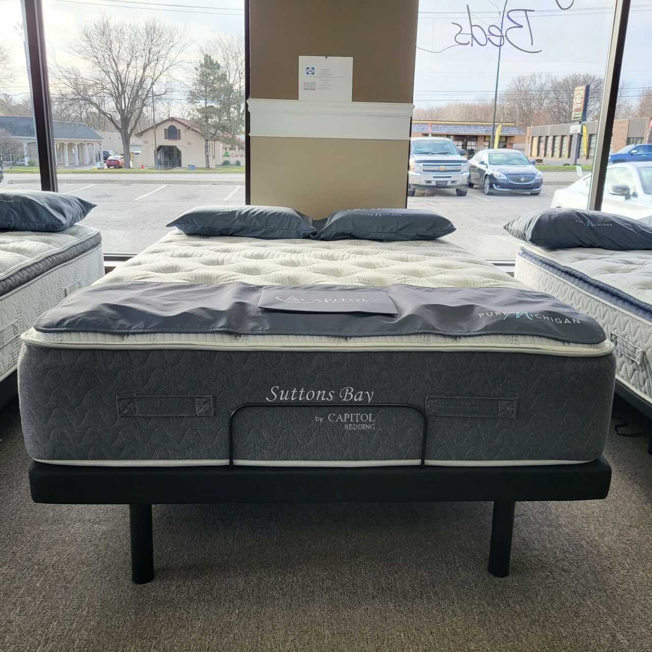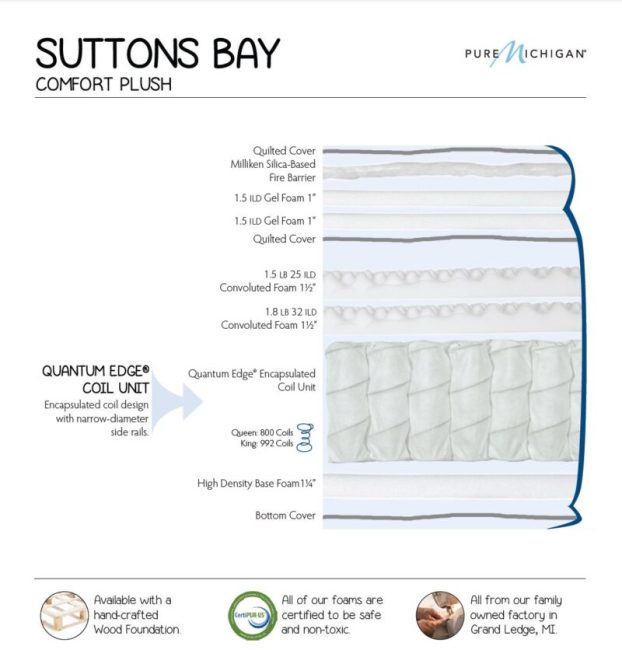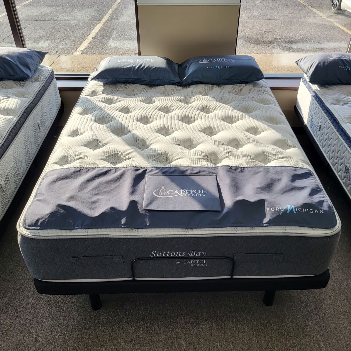 The Suttons Bay Plush (often called a “Comfort Plush”) is the softer sibling to Suttons Bay Cushion Firm. It’s built for sleepers who like to sink in a bit more at the surface while still getting the long-term durability and support that come from Capitol’s heavier-density foams and encapsulated coil system. Think of it as a “grown-up plush”: cushioned and more conforming on top, without the bottomless, mushy feel you get from many mass-market plush beds. The Suttons Bay Comfort Plush is one of our most popular beds for a reason.