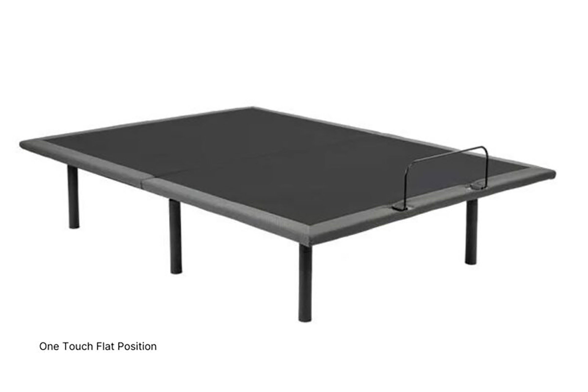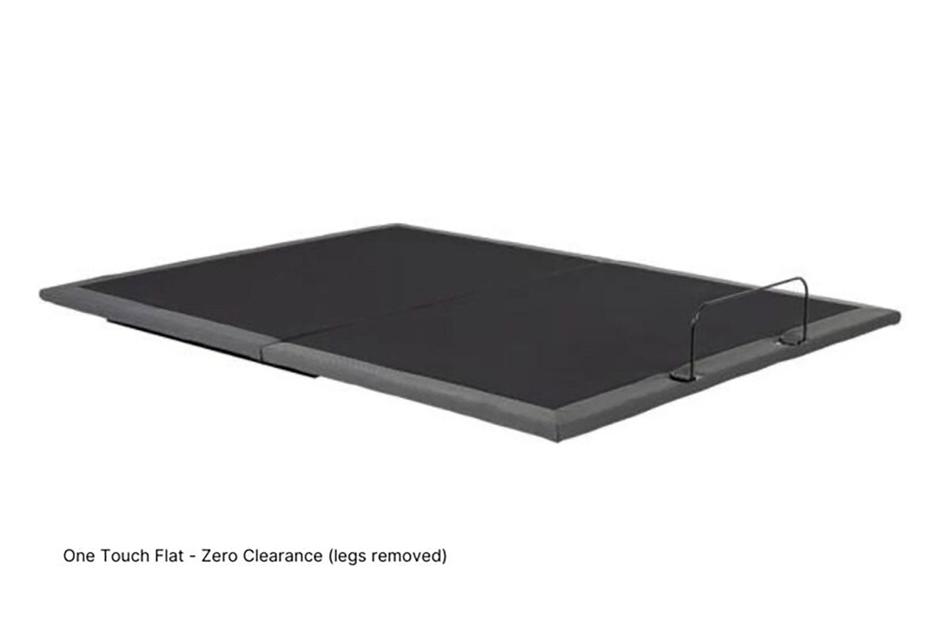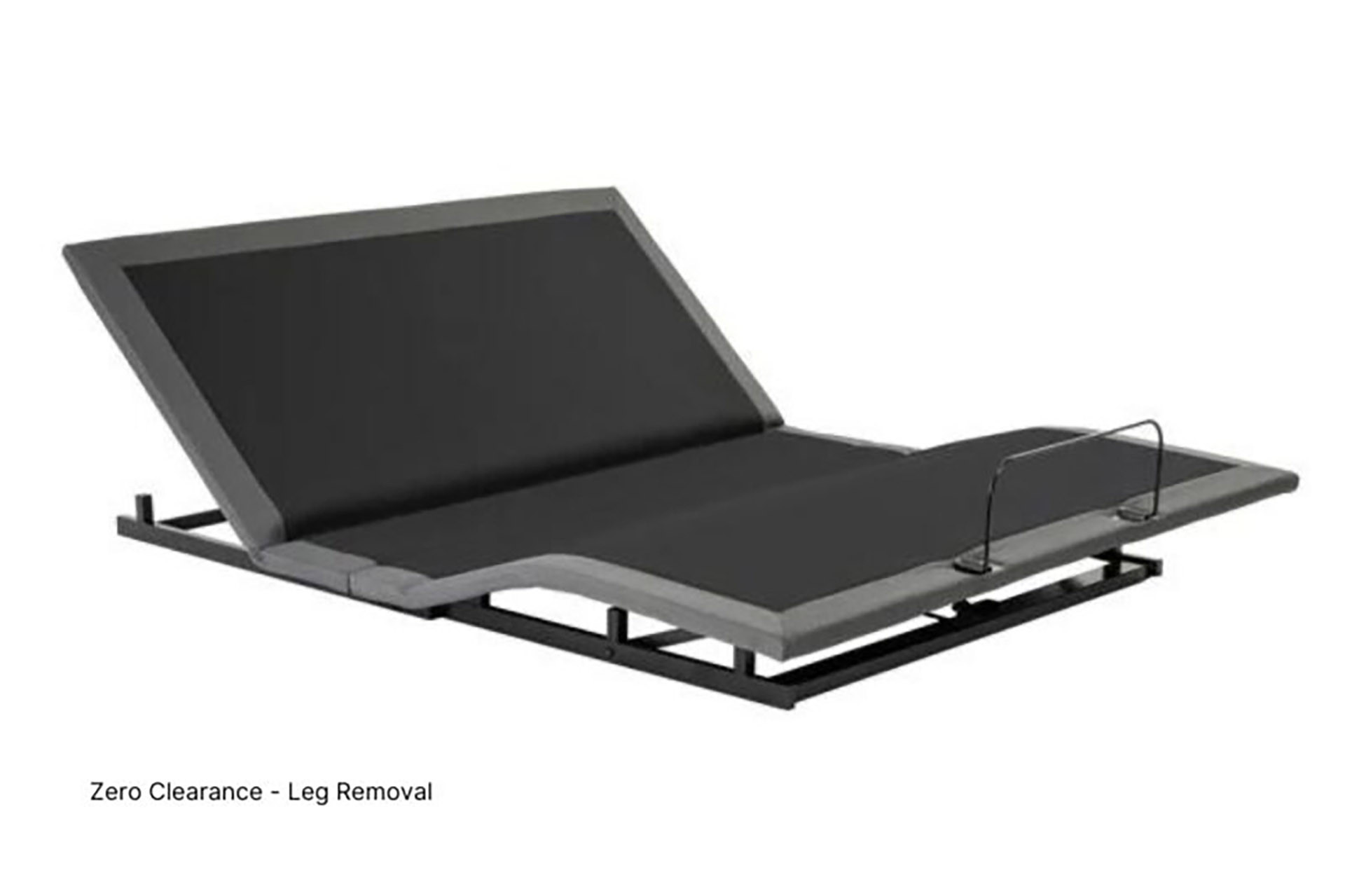The Rize Tranquility is the “keep it simple, make it better” adjustable base in our lineup. It gives you quiet head and foot articulation with enough lift range to read, work, or relax in a reclined position, plus a one-touch zero-gravity preset to help take pressure off your back and legs. The zero-clearance design means you can remove the legs completely and drop it into most platform or pedestal frames, or use the included leg kit to dial in the height that feels right in your bedroom.